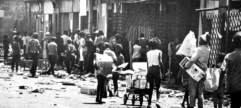 Like an A-bomb detonation, the crowd surged down 12th Street, doing a dance of destruction as they went. A symphony of burglar alarms added to the carnival atmosphere. When the police did not return, the crowd grew. Between 8 a.m. and noon, the crowd ballooned to some 10,000 people. Some were looters, some were observers, some were older residents trying to stop it, to no avail. The rioting continued unabated. Inertia was now in charge!