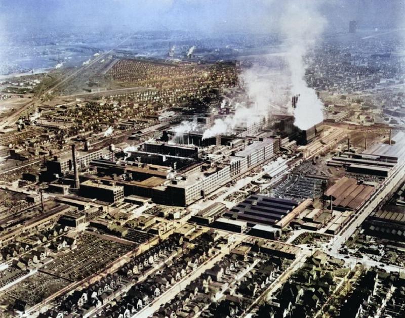 Like a fire breathing dragon, Detroit's Dodge Main pulsates with life during its heyday.